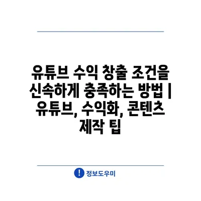 유튜브 수익 창출 조건을 신속하게 충족하는 방법 | 유튜브, 수익화, 콘텐츠 제작 팁