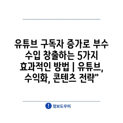 유튜브 구독자 증가로 부수 수입 창출하는 5가지 효과적인 방법 | 유튜브, 수익화, 콘텐츠 전략