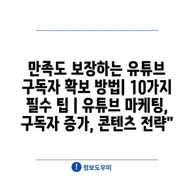 만족도 보장하는 유튜브 구독자 확보 방법| 10가지 필수 팁 | 유튜브 마케팅, 구독자 증가, 콘텐츠 전략