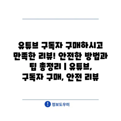 유튜브 구독자 구매하시고 만족한 리뷰! 안전한 방법과 팁 총정리 | 유튜브, 구독자 구매, 안전 리뷰 에 대해 자주 묻는 질문 TOP 5