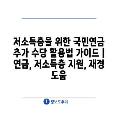 저소득층을 위한 국민연금 추가 수당 활용법 가이드 | 연금, 저소득층 지원, 재정 도움