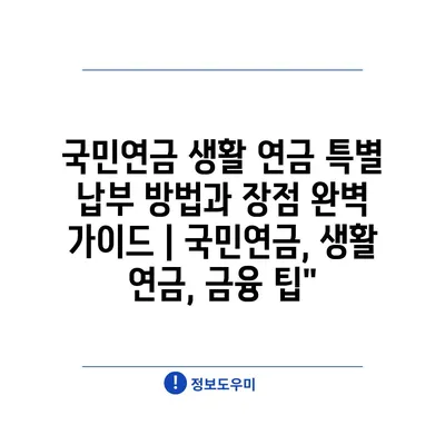 국민연금 생활 연금 특별 납부 방법과 장점 완벽 설명서 | 국민연금, 생활 연금, 금융 팁