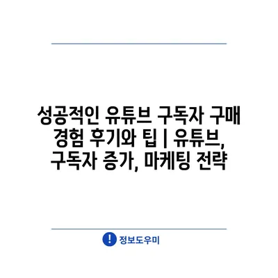 성공적인 유튜브 구독자 구매 경험 후기와 팁 | 유튜브, 구독자 증가, 마케팅 전략