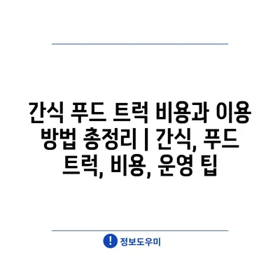 간식 푸드 트럭 비용과 이용 방법 총정리 | 간식, 푸드 트럭, 비용, 운영 팁