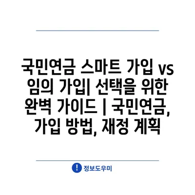 국민연금 스마트 가입 vs 임의 가입| 선택을 위한 완벽 가이드 | 국민연금, 가입 방법, 재정 계획