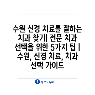 수원 신경 치료를 잘하는 치과 찾기| 전문 치과 선택을 위한 5가지 팁 | 수원, 신경 치료, 치과 선택 가이드