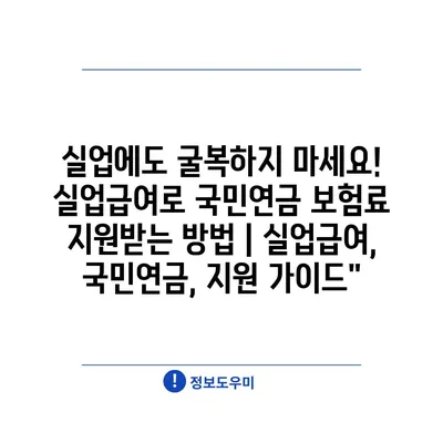 실업에도 굴복하지 마세요! 실업급여로 국민연금 보험료 지원받는 방법 | 실업급여, 국민연금, 지원 가이드”