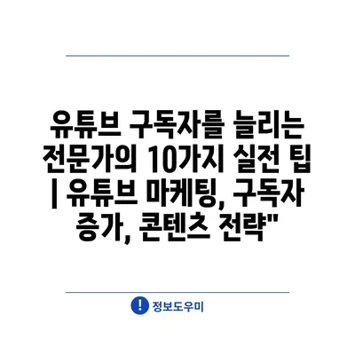 유튜브 구독자를 늘리는 전문가의 10가지 실전 팁 | 유튜브 마케팅, 구독자 증가, 콘텐츠 전략”