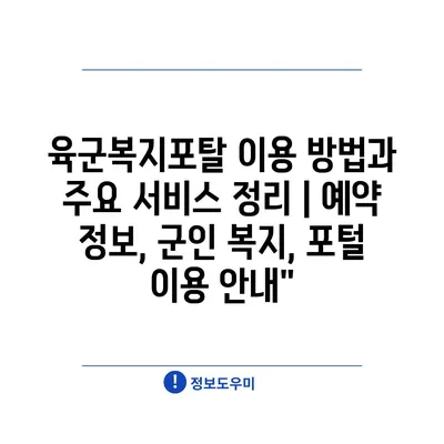 육군복지포탈 이용 방법과 주요 서비스 정리 | 예약 정보, 군인 복지, 포털 이용 안내”