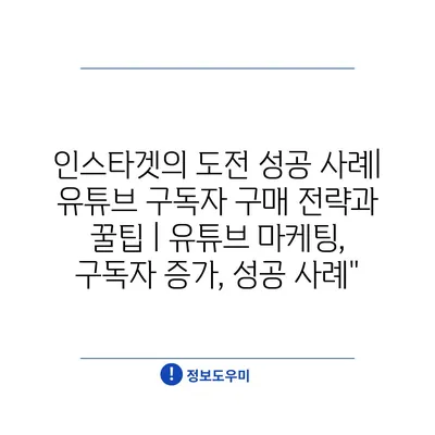 인스타겟의 도전 성공 사례| 유튜브 구독자 구매 전략과 꿀팁 | 유튜브 마케팅, 구독자 증가, 성공 사례”
