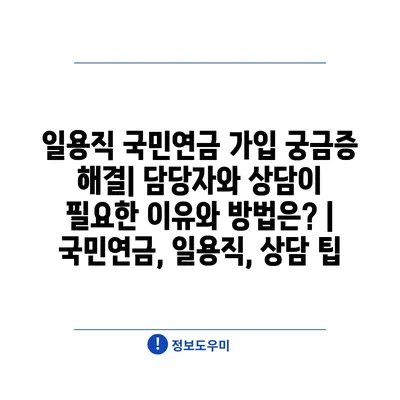 일용직 국민연금 가입 궁금증 해결| 담당자와 상담이 필요한 이유와 방법은? | 국민연금, 일용직, 상담 팁